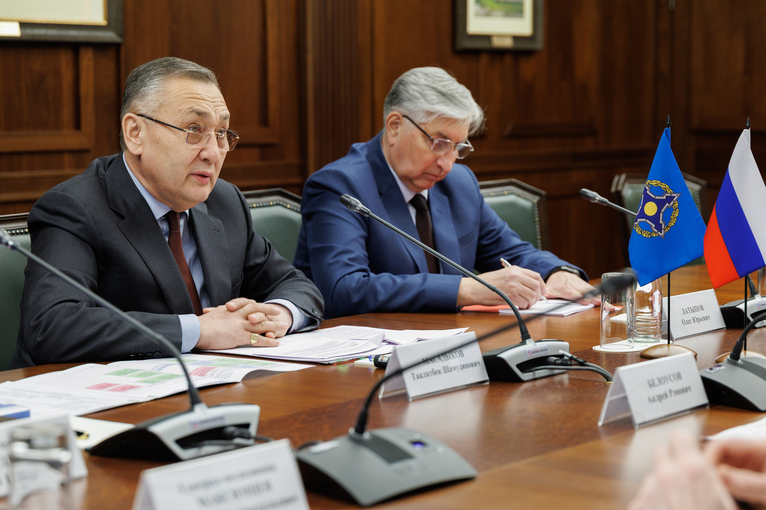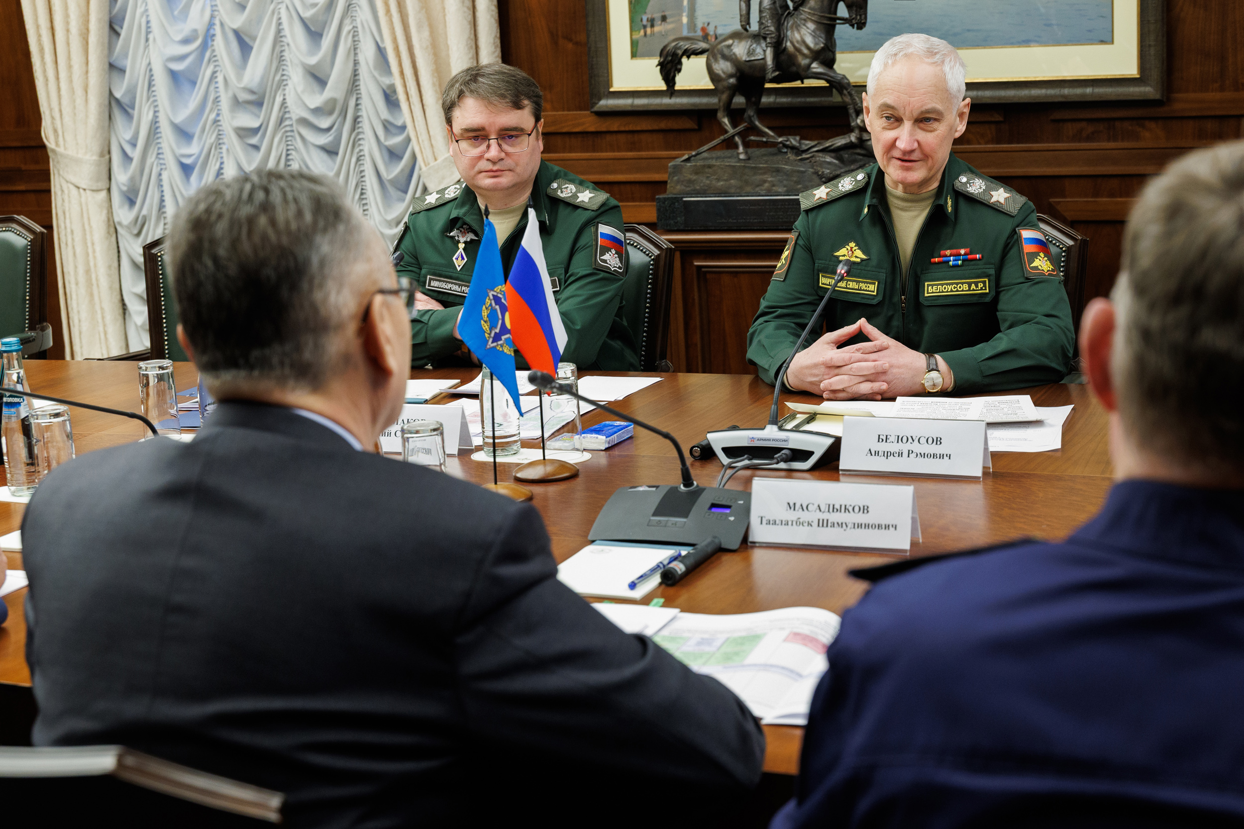 Состоялась встреча Генерального секретаря ОДКБ Таалатбека Масадыкова с Министром обороны России Андреем Белоусовым